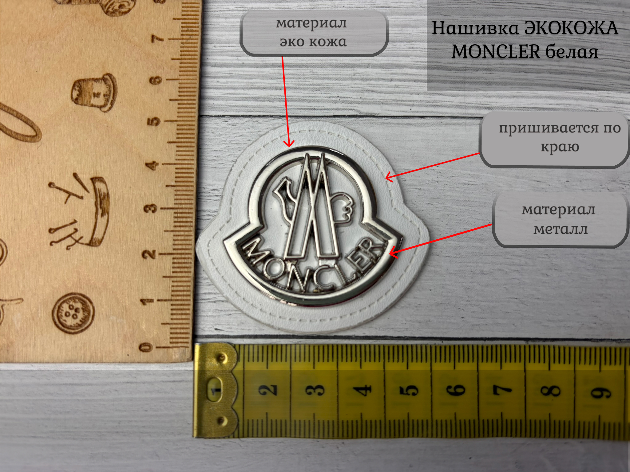 Нашивка КОЖА/МЕТАЛЛ moncler никель белый